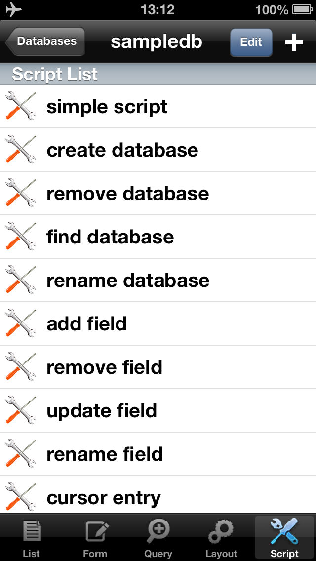 To create the script, tap the + icon at the top of the screen.